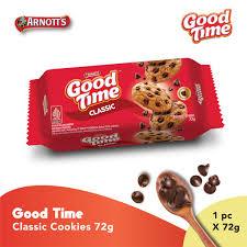 Good Time Classic Chocochips Cookies 72 gr merupakan snack biskuit persembahan GOOD TIME yang sangat renyah dan enak. Biskuit ini bertabur coklat lezat yang menambah kenikmatan setiap gigitanya. Sangat cocok menjadi teman disaat bersantai.
