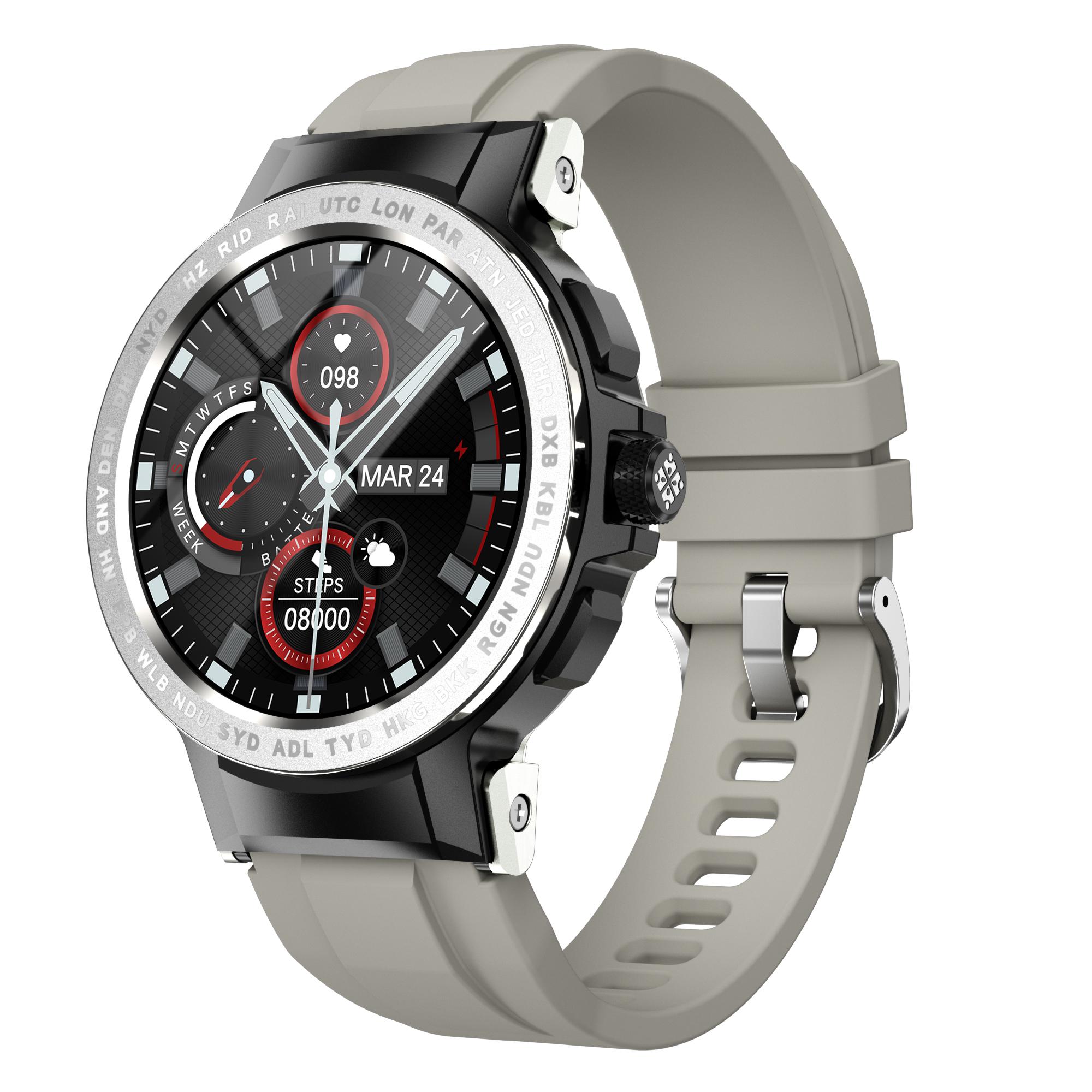 GPS IP68 Водонепроницаемые мужские умные часы с управлением музыкой Погода Спорт Сердечный ритм Артериальное давление Кислород в крови Фитнес-трекер Смарт-часы для мужчин серый