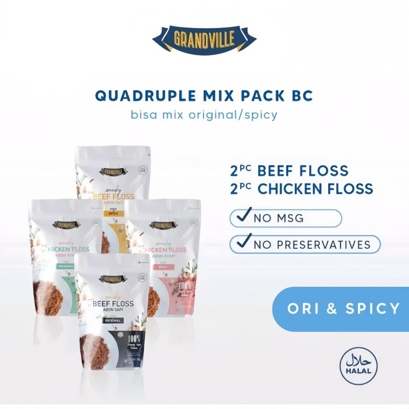 Grandville Crunchy Floss yaitu Abon yang terbuat dari 100% daging asli pilihan dari bagian kualitas terbaik. Abon tampak seperti serat-serat kapas, karena didominasi oleh serat-serat otot mengering yang disuwir-suwir. Karena kering dan nyaris tak memiliki sisa kadar air, abon biasanya awet disimpan berminggu-minggu dalam kemasan yang kedap udara. Warna abonnya yang cantik berasal dari perpaduan bumbu rempah alami tanpa pengawet dan yang pastinya NO MSG. Dengan ciri khas rasanya yang cenderung manis tapi gurih, menjadikan abon salah satu jenis makanan yang disukai hampir semua orang.