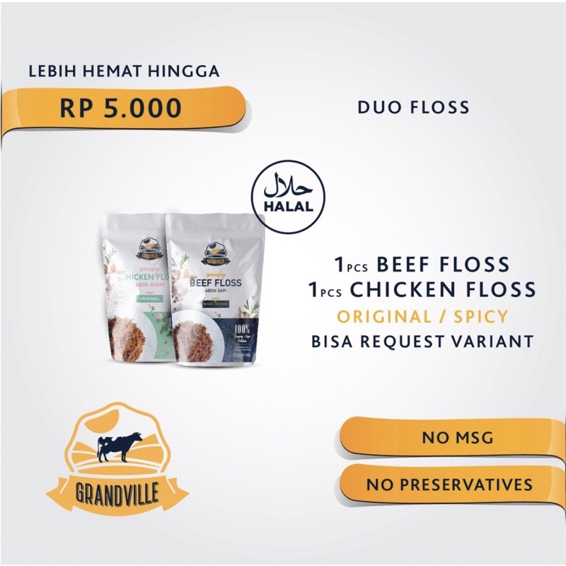 [PREMIUM] Grandville Abon Sapi & Ayam Crunchy Duo Mix Pack [Isi 2Pc] 1pc Abon Sapi & 1pc Abon Ayam [Variant Bisa Request]