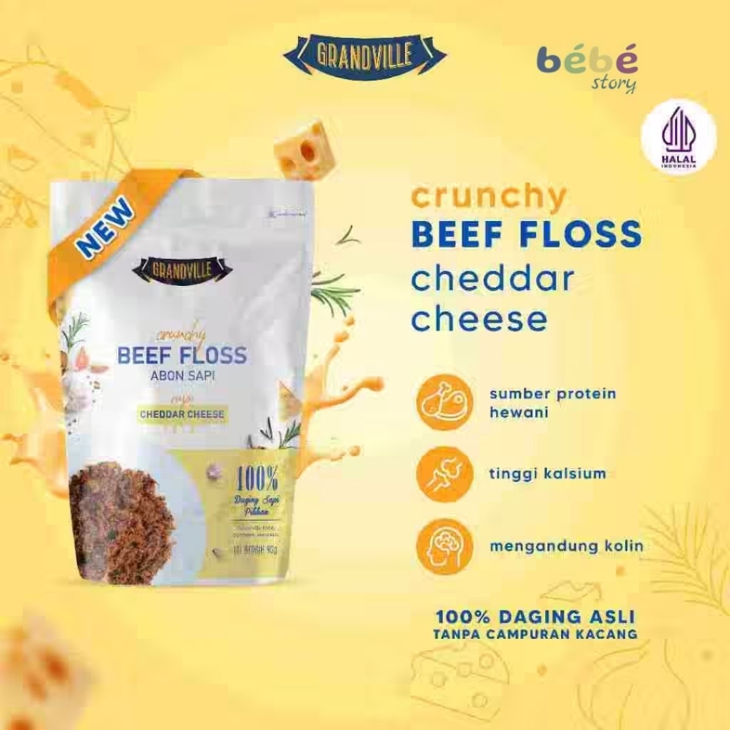 Pelengkap MPASI yang bernutrisi karena double protein hewani, mengandung kolin & tinggi kalsium) Variant baru yang unik perpaduan rasa smoked beef, rempah & melted cheese menghasilkan rasa asin, gurih &