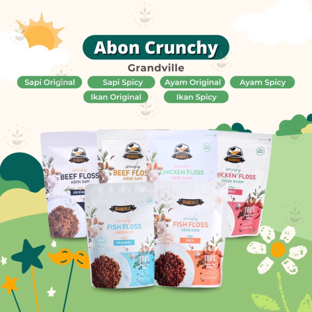 GRANDVILLE CRUNCHY ABON SAPI AYAM IKAN ORIGINAL SPICY HALAL