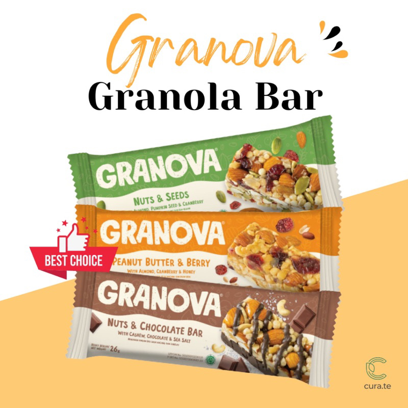 Granova Granola Bar adalah snack sehat dengan tekstur chewy yang terbuat dari kacang-kacangan, biji-bijian, buah kering dan madu. Cocok untuk sarapan atau cemilan yg praktis dibawa.
