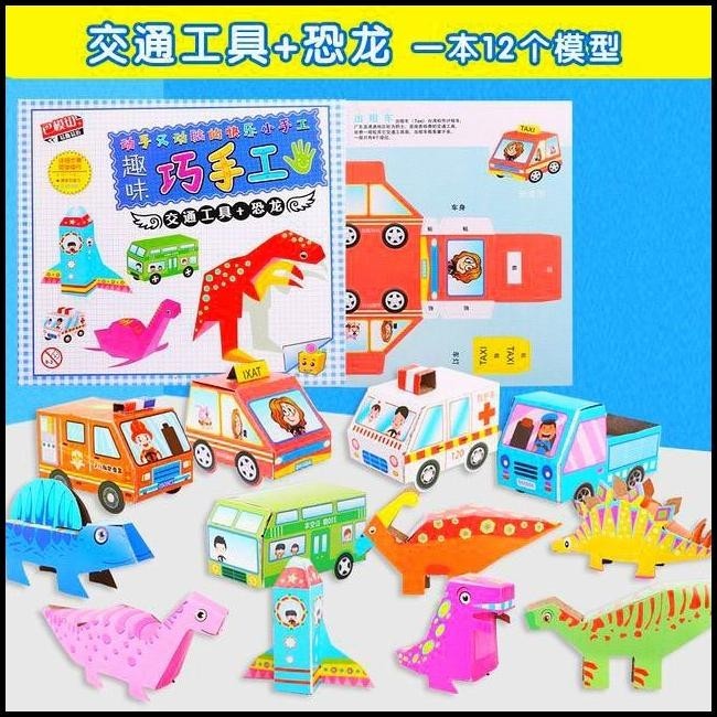 GRATIS ONGKIR MAINAN KERTAS LIPAT ORIGAMI 3D MOTIF MIX DINO+TRANSPORTASI !!!!