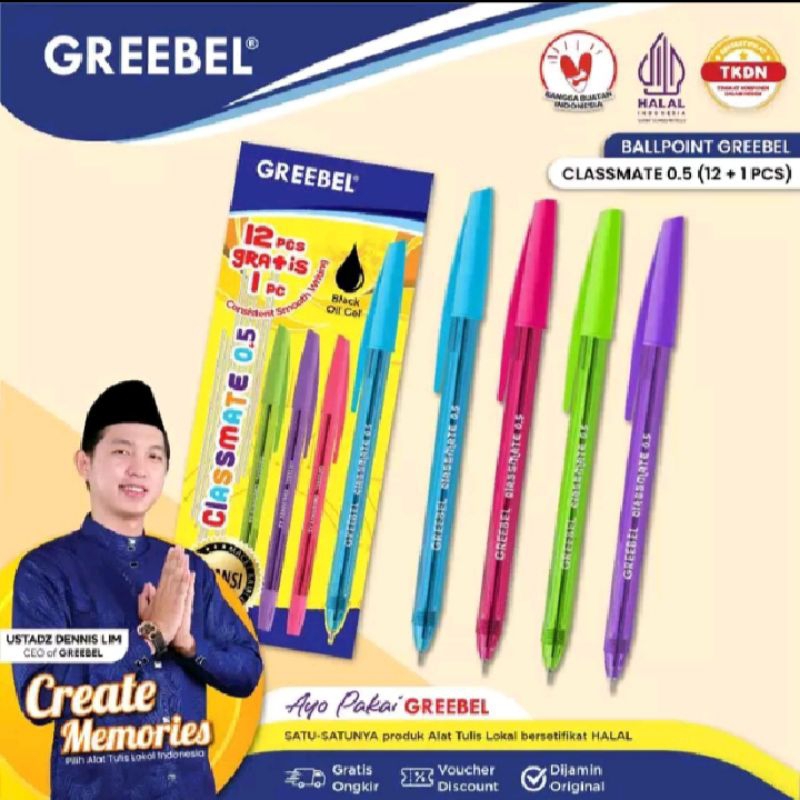 terdiri dari tinta warna hitam, di desain body yg transparan warna pink, hijau, biru, ungu dengan consistent smooth writing