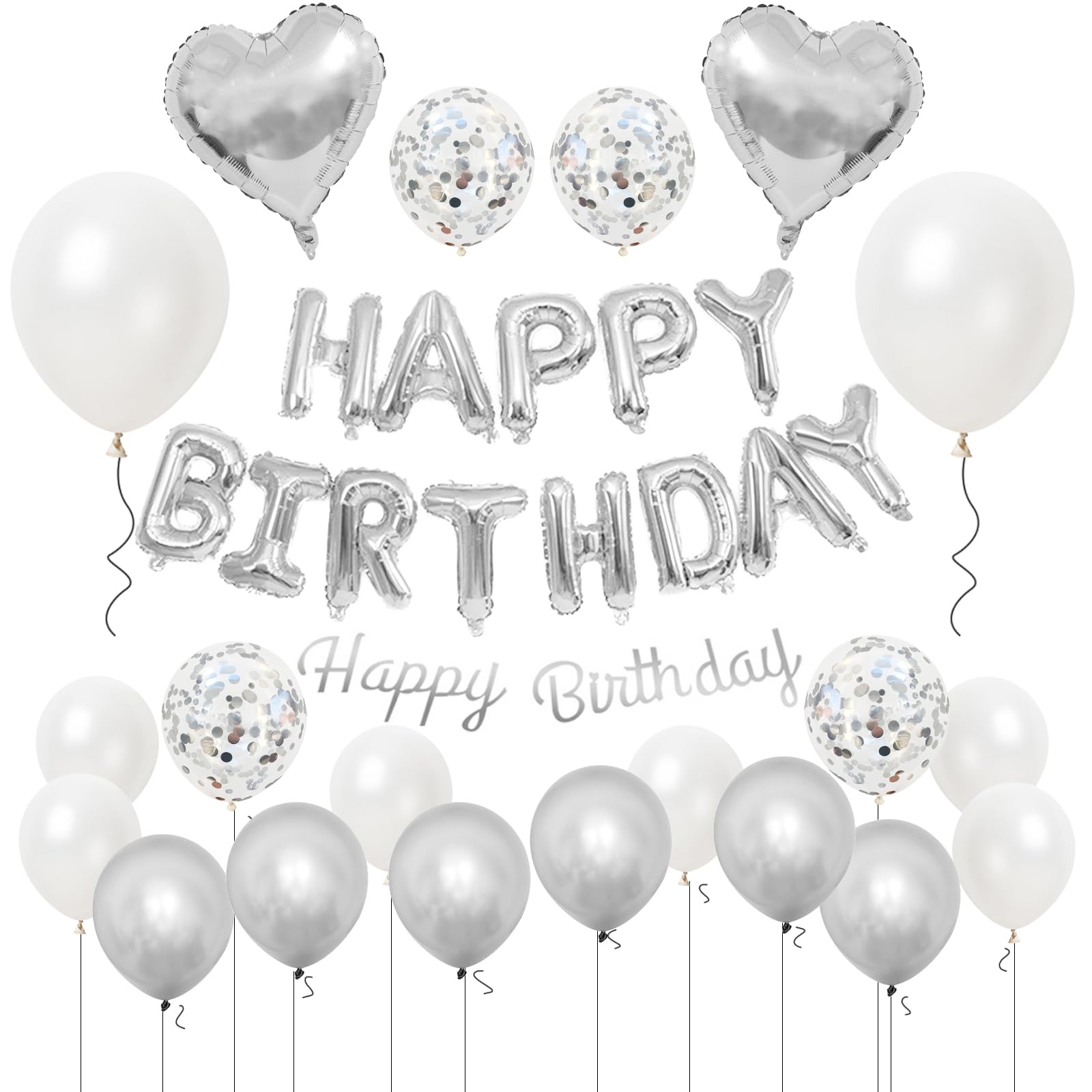 GRESATEK Украшение из воздушных шаров на день рождения Счастливый Конфетти Белый Набор, День рождения, Сердце, Воздушные шары, Двусторонний скотч, Лента, Серебристый,