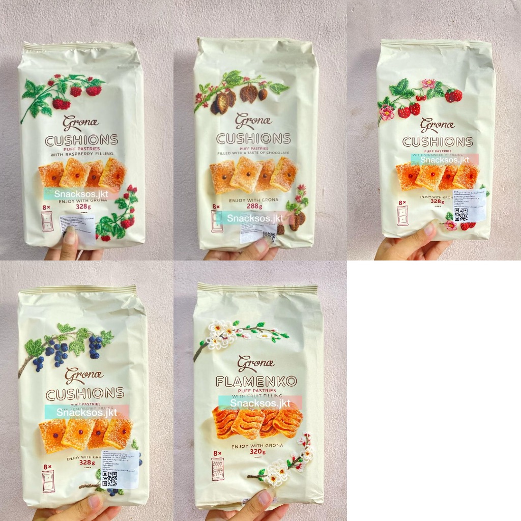 5. GRONA CUSHIONS PUFF PASTRIES WITH RASPEBERRY 328gr. BPOM RI ML.270239017700008. BB.328gr /8 @41gr. EXP.22.10.2025