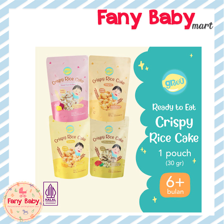 Grouu Crispy Rice Cake merupakan camilan sehat yang terbuat dari beras pilihan sehingga aman dikonsumsi untuk si kecil dan seluruh keluarga di sepanjang hari!