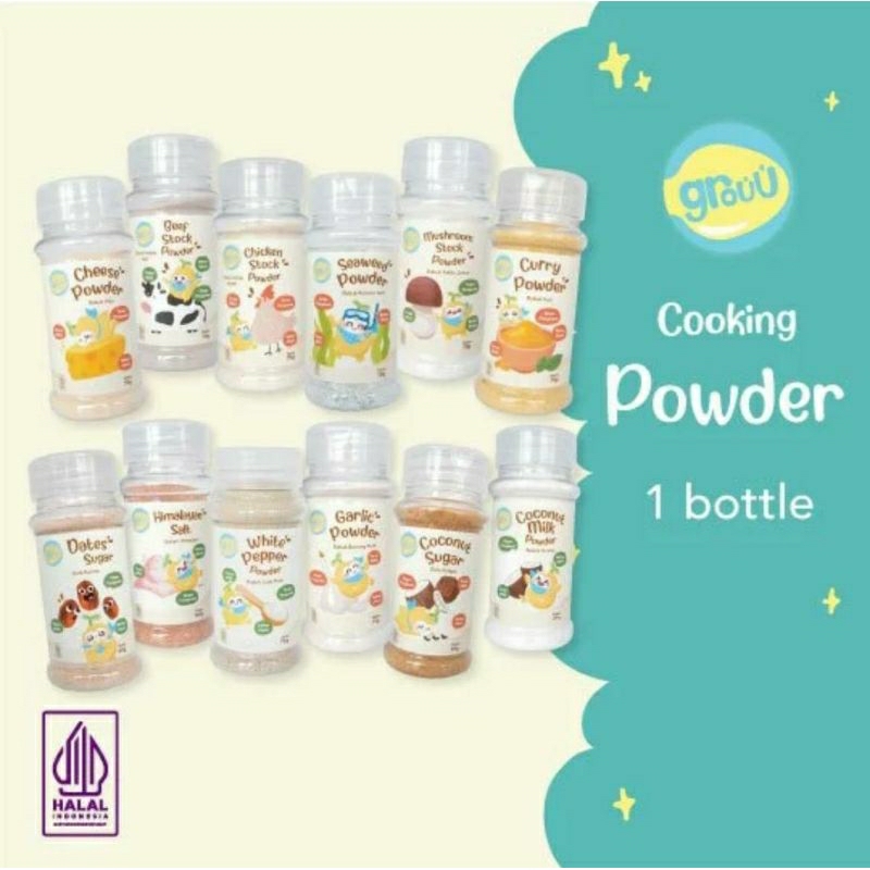 Grouu Cooking Powder terbuat dari rempah rempah asli yang aman buat sikecil dirumah. Sudah Halal MUI Cooking Powder - Chicken Stock Bubuk Kaldu Ayam