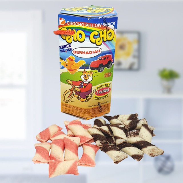 Wafer Roll Bantal dengan rasa cokelat dan strawberry Produksi PT Dolphin, Tangerang. Berhadiah mainan didalamnya. Sgt cocok utk dijadikan gift/ hampers ulang tahun anak.
