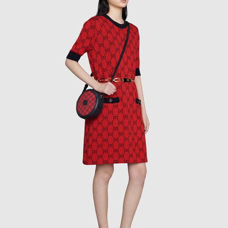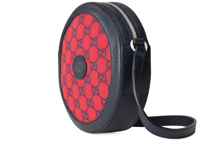 GUCCI Валентиновская коллекция холщовая с кожаной круглая сумка через плечо кроссбоди женская красная и тёмно-синяя