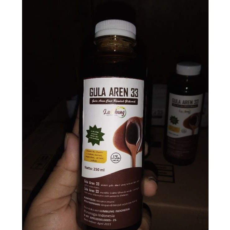 gula aren 33 cair mengandung vitamin b3,vitamin c,kalium, kalsium,magnesium,zat besi,sodium.