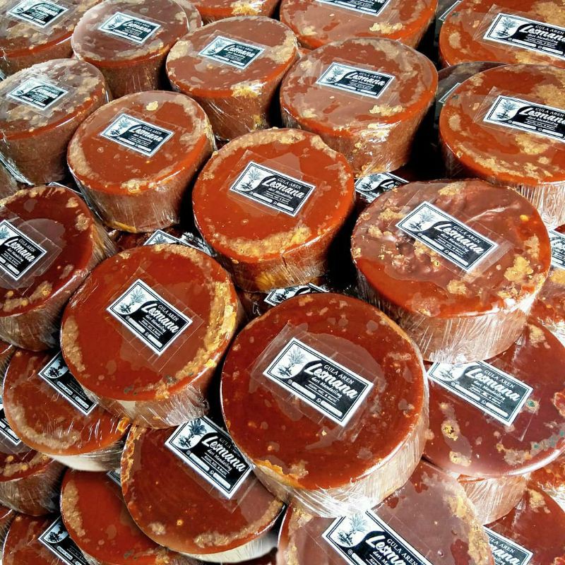 Gula aren per lempeng beratnya antara 0,9 - 1,3 kg (9 - 13 ons)