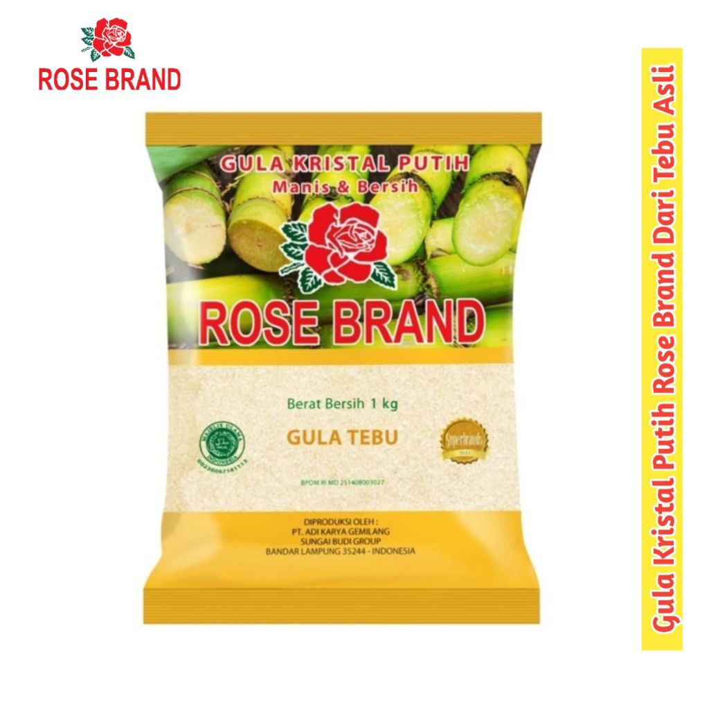 Gula Pasir Rose Brand: Warna alami Dihasilkan dari proses penyaringan gula. Fruktosa alami, Memberikan rasa manis. Gula kristal premium, Terbuat dari tebu pilihan dan diproses secara higienis. Tekstur halus, Mudah larut dan tercampur. Multifungsi, Bisa digunakan sebagai pemanis minuman atau dicampur dalam adonan kue.