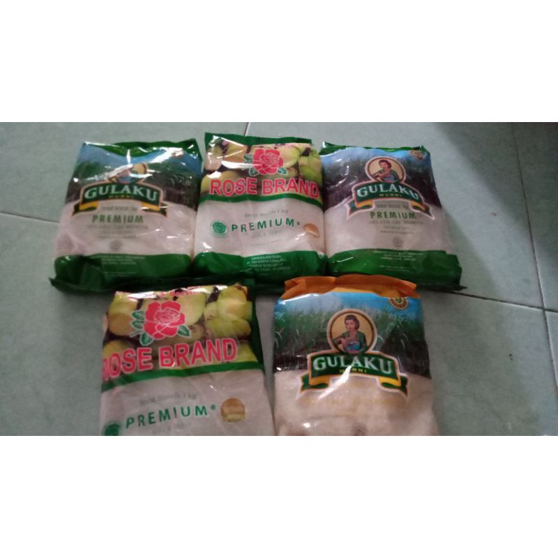 gula kemasan 1 kg merk rose brand dan gulaku (tergantung stok)