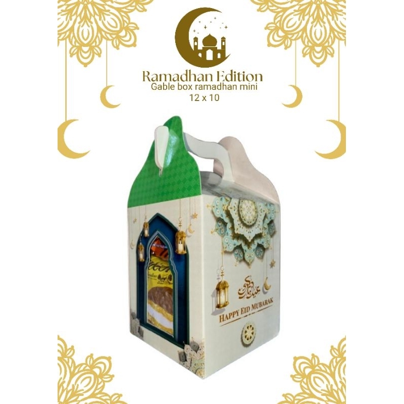 Sambut Ramadhan penuh berkah dengan **Gable Box Ramadhan Mini**! Dikemas dalam desain eksklusif bertema Ramadhan, produk ini cocok sebagai hantaran atau suguhan spesial di bulan suci.