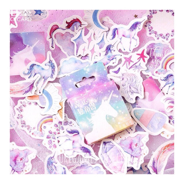1 Box terdiri dari 45 sticker bertema unicorn yang super cantik