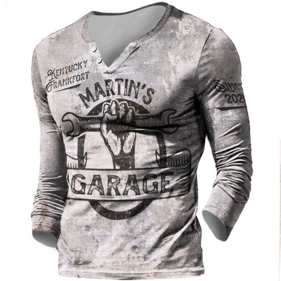 Garage Man Cave Printed Long Sleeved Henley