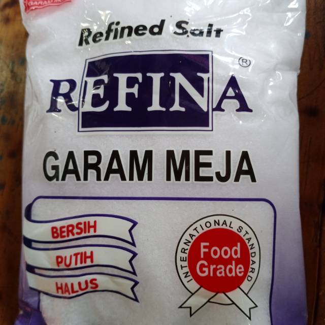 Garam dapur merek Refina putih bersih higienis. Berat 500 gram