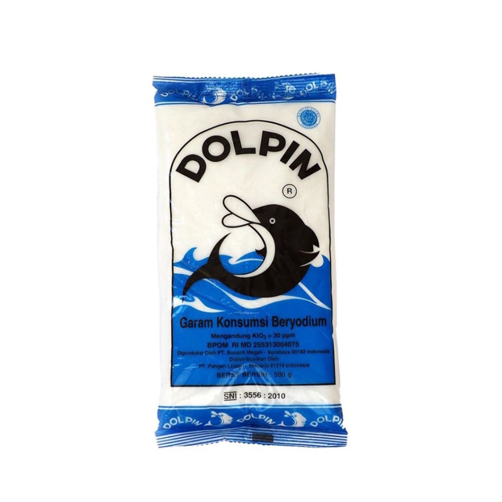 DOLPIN Garam Beryodium 500 g adalah garam konsumsi hasil teknologi pemurnian yang modern dengan kualitas yang baik. Lebih sehat untuk dikonsumsi karena lebih sedikit kotoran atau cemarannya. Dapat digunakan untuk ditaburkan ke makanan. Memiliki cukup kadar iodium agar tubuh terhindar dari gangguan penyakit akibat kekurangan iodium. Berfungsi sebagai nutrien esensial (penting) yang dapat membantu menjaga fungsi tiroid, sehingga seseorang terhindar dari penyakit karena kekurangan iodin (goiter/gondokan). Mempunyai tekstur yang lebih halus sehingga lebih mudah larut dalam air dan dapat tercampur rata di makanan. Tersedia dalam kemasan bag 500 g.