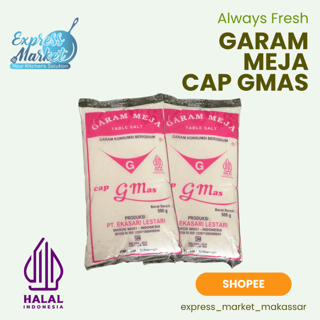 Solusi dapur andalan, selalu segar dan siap pakai — Garam Meja Cap GMas, pilihan cerdas keluarga Indonesia.