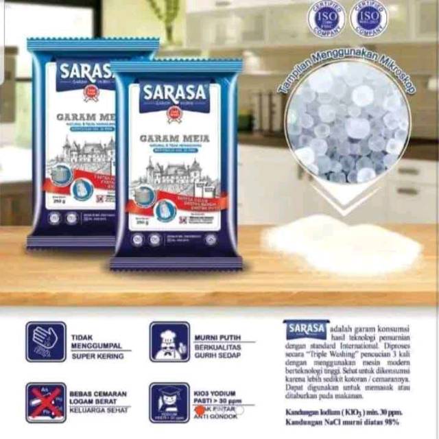 Garam Halus Sarasa netto 250gr/pack isi 40pack/ball