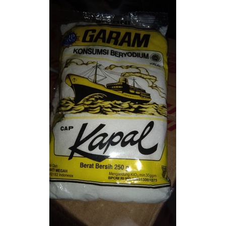 Garam Kapal 250gr. silakan tanya stok ke admin karna stok berjalan. barang yg dikirimkan sudah melalui proses pengecekan ulang. kurang lebihnya chat admin. terimakasih