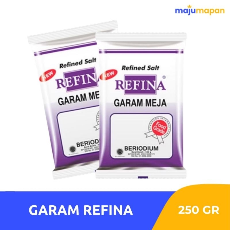 Refina adalah garam konsumsi hasil teknologi pemurnian dengan standard international diproses secara kristalisasi dengan menggunakan mesin modern berteknologi tinggi. Dapat digunakan karena lebih sedikit kotoran/cemarannya. Other Details : Dapat digunakan untuk memasak atau ditaburkan pada makanan.