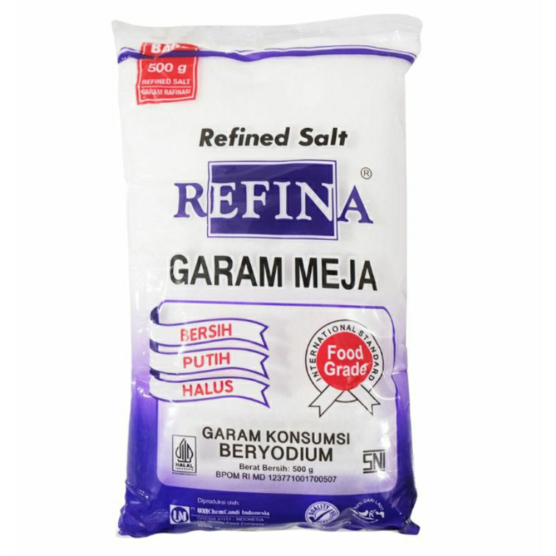 Refina Garam Meja Beriodium 500 g adalah garam konsumsi dengan kandungan yodium yang dipersembahkan oleh Refina. Setiap butir garam telah melalui proses sortir yang ketat untuk dapat memastikan tidak ada kandungan berbahaya yang terkandung di dalamnya, juga untuk memastikan garam yang disajikan berkualitas tinggi dengan cita rasa asin dan gurih. Selain itu, garam meja dari Refina juga diproses melalui pemrosesan dengan teknologi refinery yang merupakan proses pengolahan dengan tahap pelarutan pengendapan kotoran dan penyaringan logam berat kemudian dikristalkan dengan menggunakan mesin modern berteknologi tinggi untuk menghasilkan garam sehat dan layak untuk dikonsumsi. Kini telah hadir dalam kemasan 500 gram yang cocok dan praktis untuk ditambahkan pada berbagai macam masakan dan membuatnya menjadi jauh lebih nikmat. Hanya berikan yang terbaik untuk keluarga di rumah bersama dengan Refina Garam Meja Beriodium 500 g.