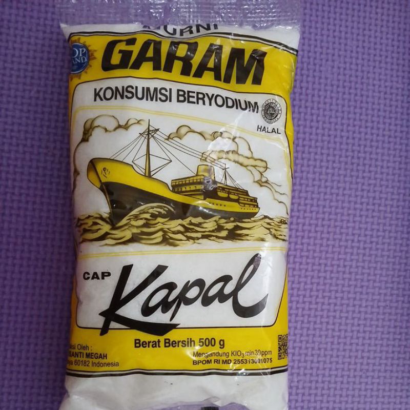 garam konsumsi beryodium cap kapal berat bersih 500 gr. harga yang tertera untuk 1 bungkus berat 500 gr