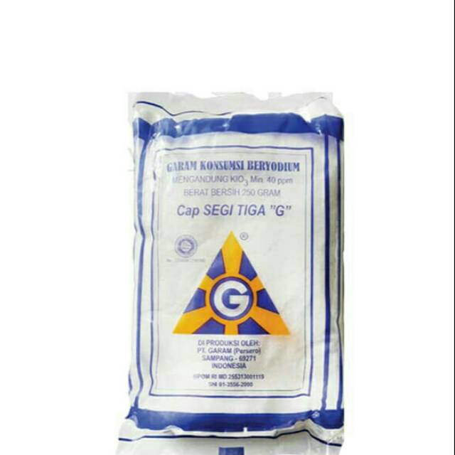 Produk Garam Cap Segitiga "G" adalah Garam yang di proses menggunakan teknologi pengolahan yang menjamin higienitas produk dan kandungan Yodium yang cukup, sehingga dapat membantu mencegah terjadinya penyakit Gondok, Kretin dan penurunan IQ serta menambah rasa lezat pada makanan dan memenuhi standar :