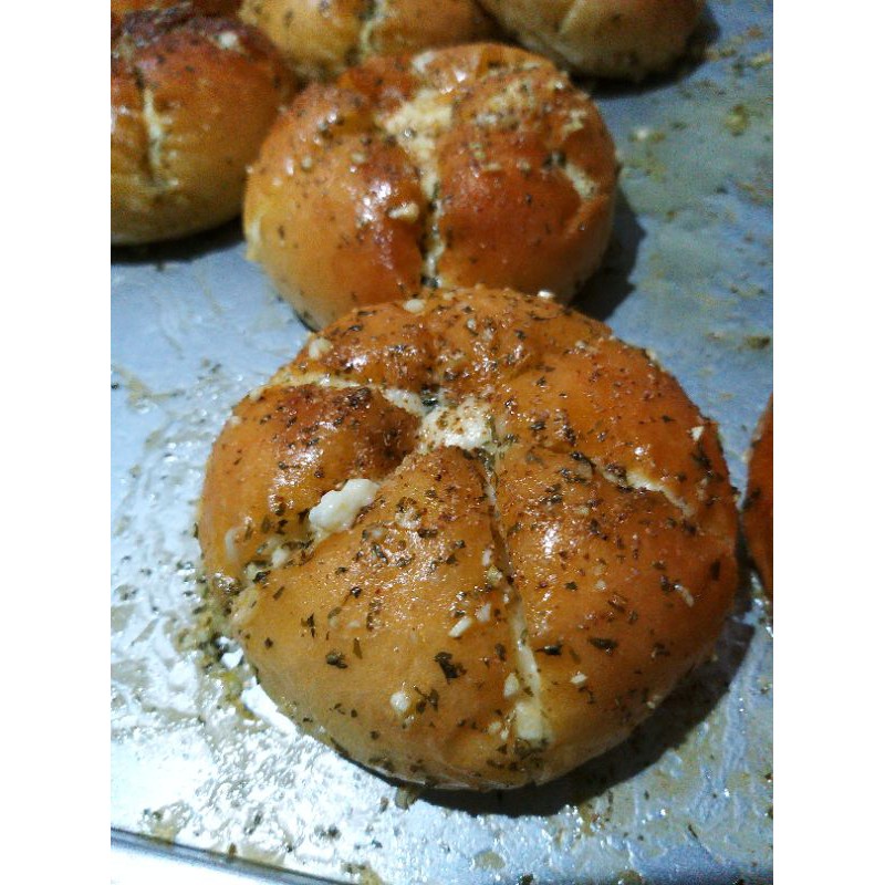 Roti lembut dengan isi cream cheese lemon dan dibalur garlic sauce.