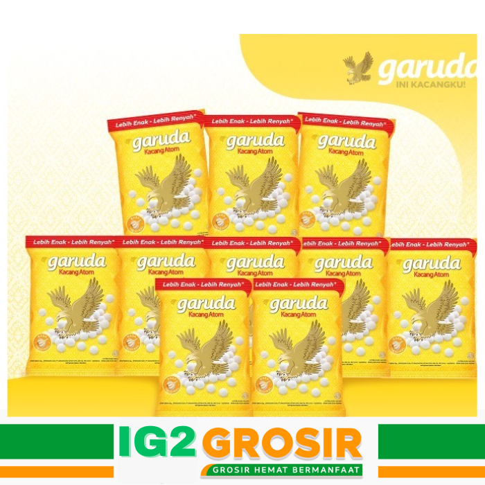 Garuda Kacang Atom kemasan adalah kacang atom persembahan Garuda Food. Kacang atom Garuda dihasilkan dari kacang tanah pilihan yang garing dan padat kemudian dibalut oleh tepung tapioka dan digoreng hingga kering dan garing dalam minyak nabati yang sehat. Berbagai manfaat yang ada dalam kacang tanah ada dalam setiap kerenyahan kacang atom Garuda. Bahkan, kekayaan lemak tak jenuh dalam kacang Garuda dapat mengurangi risiko jantung koroner pada hidup Anda. Maksimalkan setiap momen kebersamaan Anda bersama teman, sahabat, dan keluarga dengan Garuda Kacang Atom dan rasa garingnya.
