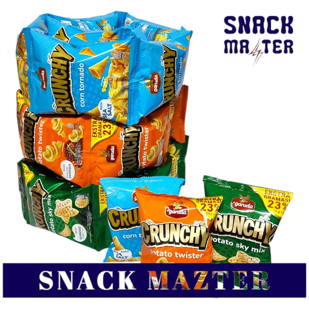 Garudafood kembali meluncurkan Garuda Crunchy yang merupakan inovasi dari hasil open collaboration menggandeng partner global yang telah sukses mengembangkan merek Bugles 1 renceng isi 10 bungkus . Berupa snack jagung dgn rasa sea salt yg gurih. Ber BPOM dan Halal MUI Varian Tersedia :