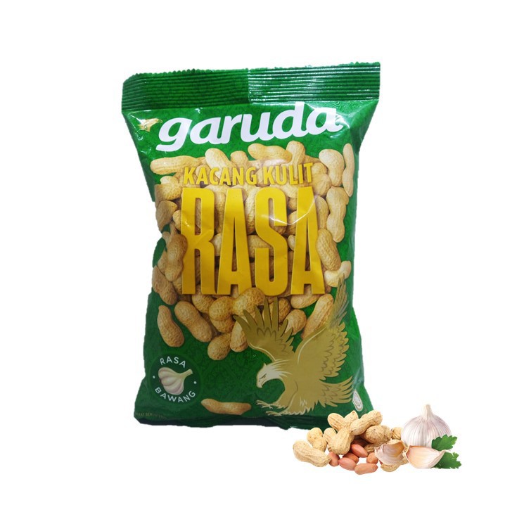 Garuda Kacang Kulit Rasa Bawang dipersembahkan oleh Garuda Food sebagai kacang kulit dalam kemasan kecil dengan cita rasa yang berbeda dengan kacang kulit lainnya. Kacang Garuda dihasilkan dari kacang tanah pilihan yang garing dan padat. Berbagai manfaat yang ada dalam kacang tanah ada dalam gurihnya kacang kulit Garuda.