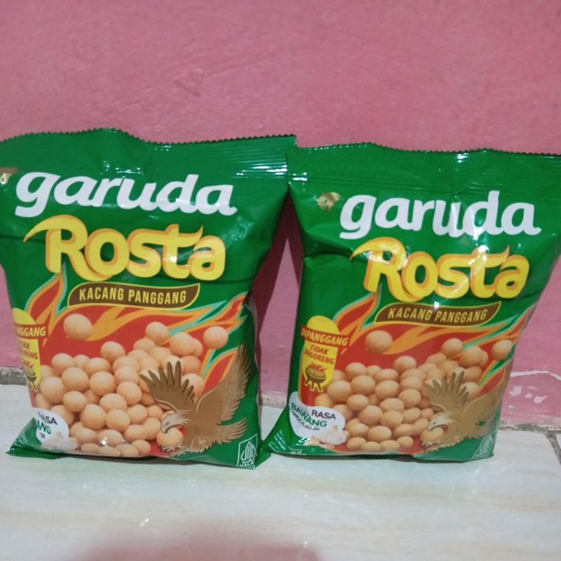 Rosta Kacang Panggang Rasa Bawang Garuda dihasilkan dari kacang tanah pilihan yang garing dan padat, serta dibalut oleh tepung terigu dan dipanggang dengan minyak nabati sehingga memiliki kandungan yang kaya akan lemak tak jenuh, serta dapat mengurangi risiko jantung koroner pada hidup Anda, sangat cocok dinikmati saat santai bersama teman, sahabat, dan keluarga.
