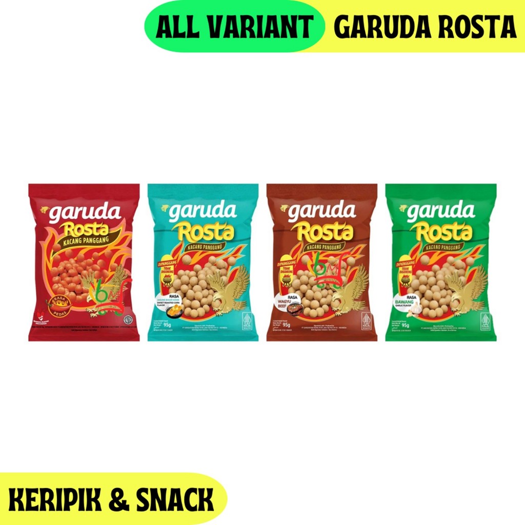 Kacang Garuda kini hadir dalam varian Rosta, yaitu kacang yang dipanggang dan bukan digoreng. Hasilnya, kacang menjadi lebih renyah. Setelah dipanggang, kacang diberi bumbu yang berlimpah sehingga dalam setiap gigitan, kerenyahan dan kegurihan rasanya pasti nempel di lidah.