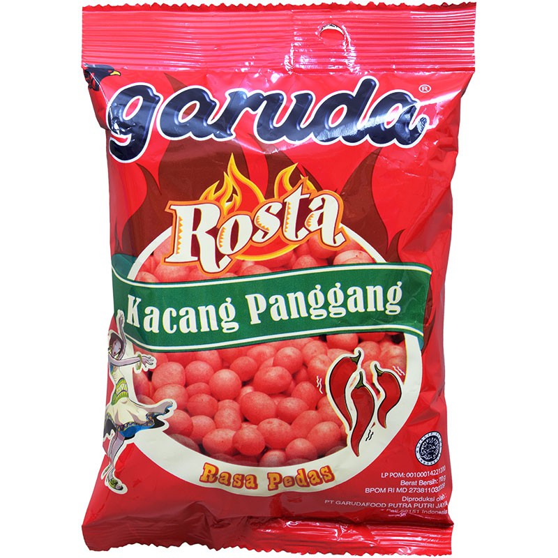 Garuda Rosta Pedas 70g Garuda Rosta Pedas 70g merupakan Kacang Panggang Rosta dengan rasa pedas persembahan Garuda Food. Kacang panggang ini dibalut dengan saos pedas yang enak dan gurih dan ditaburi lagi dengan chilli flakes, membuat rasa pedas kacang ini semakin lezat. Cocok untuk dijadikan camilan saat bersantai dirumah. Hadir dengan kemasan 70g, mudah dibawa kemanapun. Dapatkan Garuda Rosta Pedas 70g di Alfacart.com