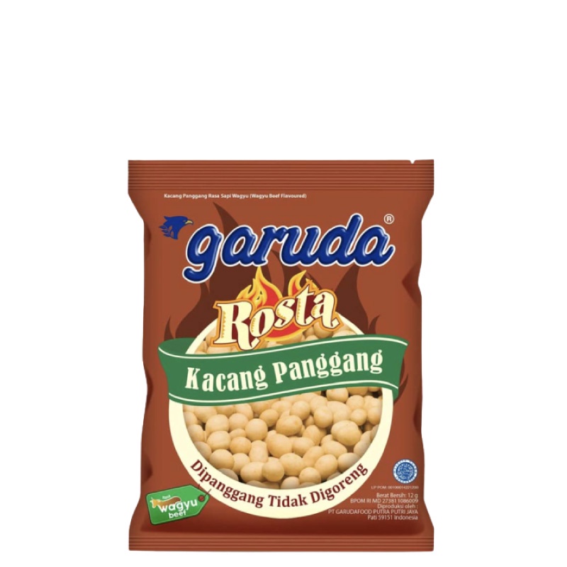 Kacang Panggang Garuda Rosta Wagyu Beef 100 gr Rasa Wagyu beef adalah kacang panggang rasa daging sapi panggang premium khas Jepang. PERTAMA di Indonesia! Shelf Life: 12 bulan BPOM MD 273111112009