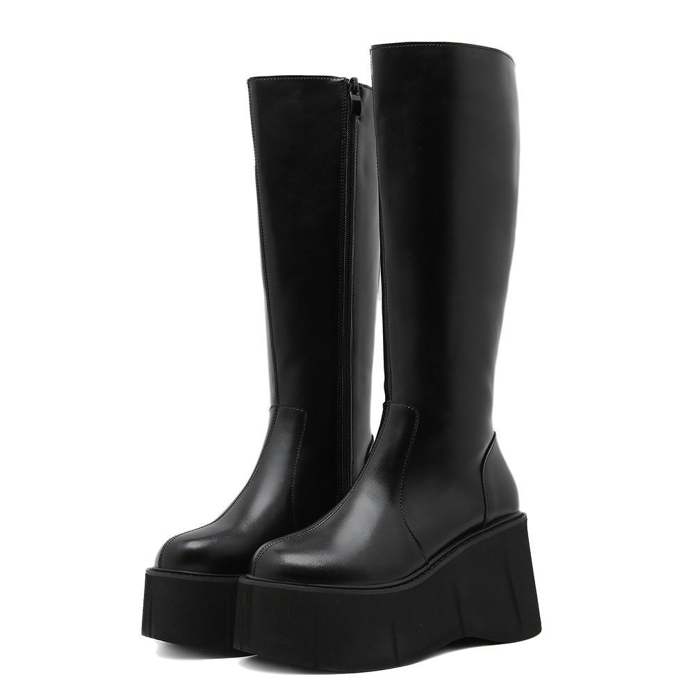 Gdgydh Модные женские сапоги до колена, зимние сапоги на утолщенной танкетке и платформе, застежка-молния, плюшевая зимняя обувь из искусственного меха 43 чёрный