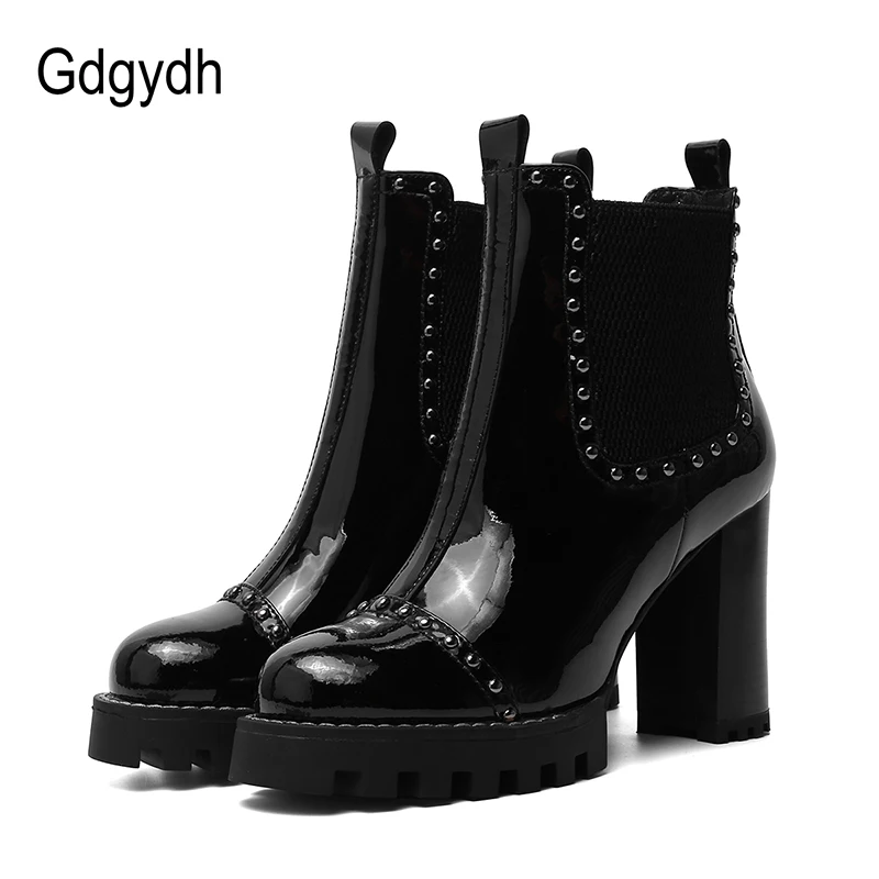Gdgydh/в готическом стиле панк, женская обувь, черный цвет, в наличии большие размеры: Лакированная кожа реальные 2021 Новинка; Сезон весна-осень; ...
