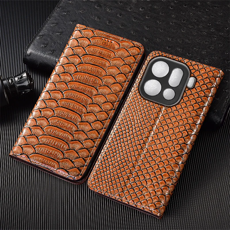 Genuine Leather Flip Case For Oppo Find X8 X8S X9 Pro Plus Ultra Phone Cover Card Cases Python Pattern Handmade Scratch Proof