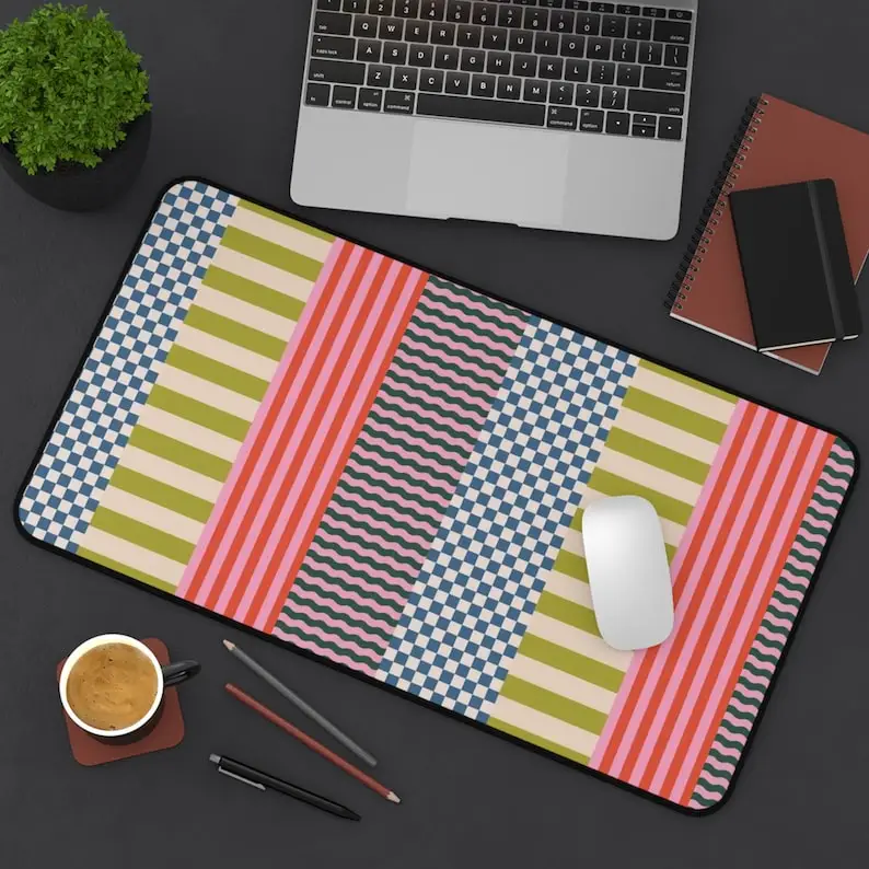 Geometric Color Block Checkered Stripe Modern Stylish High-quality Placemat, Modern Geometric Pattern Mouse Pad, Gamer Gift