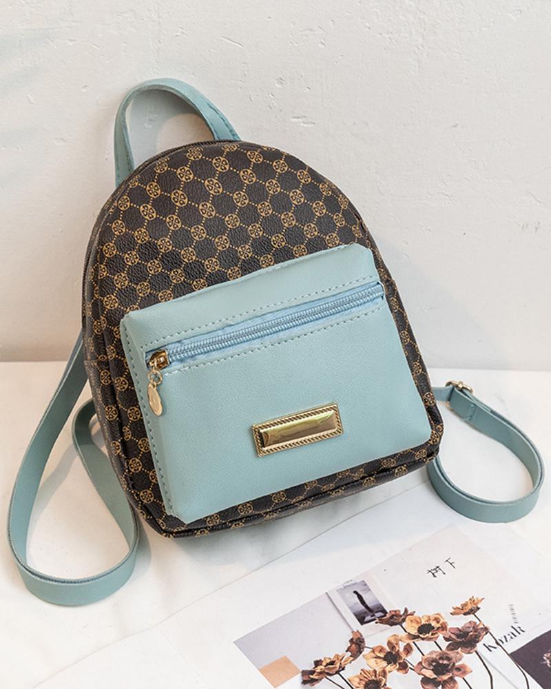 Geometric Print Zipper Design Backpack, Blue