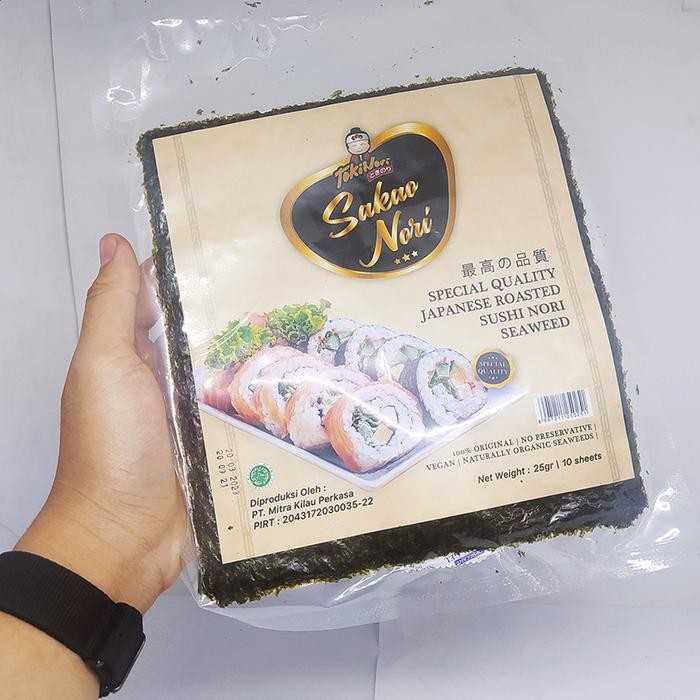 Ready Stock..!! TOKINORI SAKAO NORI SPECIAL GRADE SEAWEED - SNACK RUMPUT LAUT Kemasan : (10 Sheets / Lembar) Detail Produk : - Rumput laut panggang - Untuk menggulung suhi, kimbab dan lain - lain - Kemasan yang lebih praktis - Rasa polos / plain - Halal MUI (Indonesia) - PIRT (tercantum di kemasan) - Lembaran tebal amp; bisa langsung di makan Sakao Nori Roasted Seaweed Rumput Laut [10 sheets] adalah rumput laut dengan rasa plain yang telah memiliki sertifikat Halal MUI, sehingga aman dikonsumsi secara langsung. Ideal dijadikan sebagai penggulung sushi / kimbab. ---------------- **Penting!! DIWAJIBKAN pembeli merekam video saat pembukaan paket. Tanpa adanya bukti video, akan sangat sulit untuk kami memproses keluhan anda..** **Tanyakan terlebih dahulu stok barang sebelum order, karena dikuatirkan stok barang habis terjual.** **Desain atau kemasan produk yang Anda terima bisa berubah sewaktu-waktu tanpa pemberitahuan, sesuai dengan ketersediaan dari pabrik. Namun sama sekali tidak mengurangi fungsi dan atau kegunaan dari produk pesanan Anda.** #sakao #nori #sakaonori #roastedseaweed #seaweed #rumputlaut #cemilanrumputlaut #snackrumputlaut Trimakasih kakak