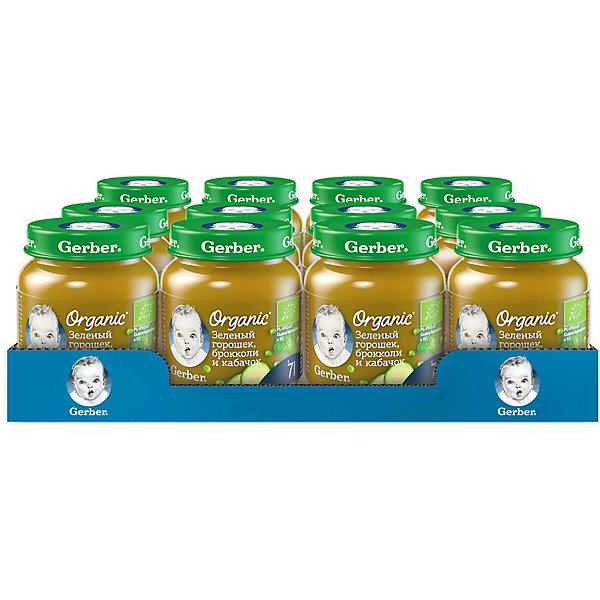 Gerber Organic овощное орг аническое пюре Зеленый г орошек, брокколи и кабачок 125г 12 шт х уп с 7 месяцев