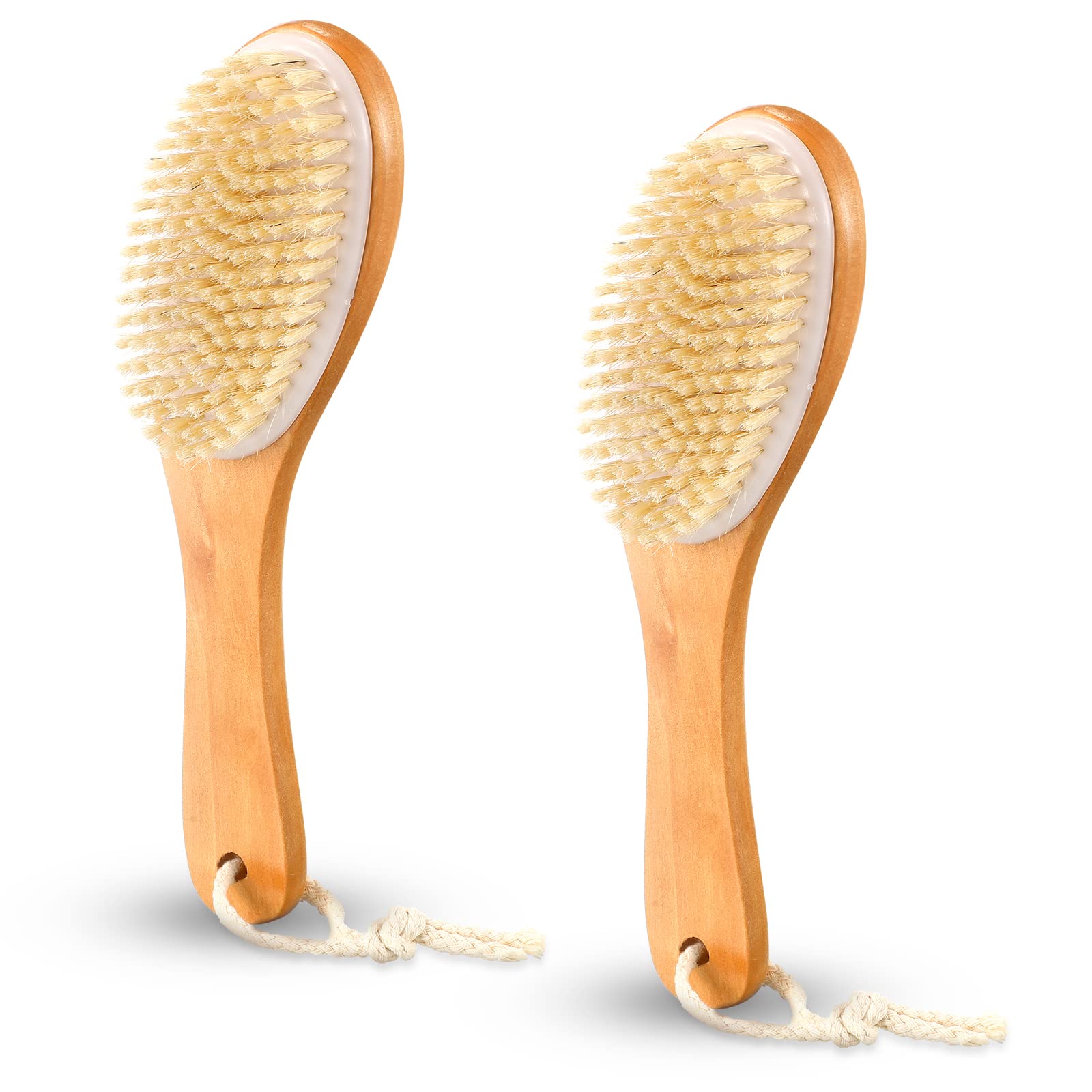 Gerrii Сухая чистка тела Натуральная щетина кабана 2 шт. с контурной деревянной ручкой для спины, ног, ступней, отшелушивающая и эксфолиативная щетка, щетина,