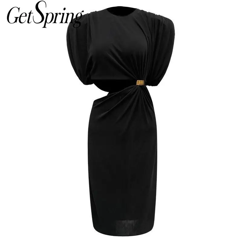 GetSpring женское платье темпераментное черное платье с наплечниками с металлической пряжкой ажурные Длинные платья Асимметричные винтажные о...