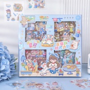 Koleksi stiker box Giant Rabbits Day menghadirkan beragam mini stiker girly yang pasti akan kamu sukai. Di dalamnya bisa kamu temukan beragam stiker dekorasi seperti bintang, pita, bunga, dan lainnya, stiker objek seperti dessert, boneka, binatang, dan tidak ketinggalan beragam outfit yang imut.