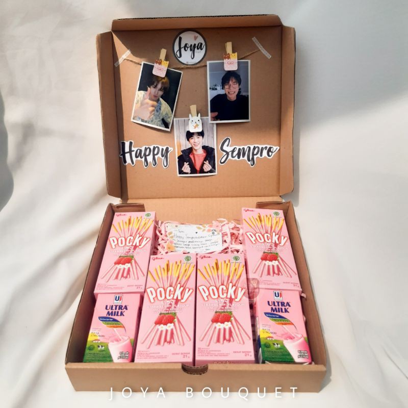 CONTOH : NABATI DIGANTI RASA CHOCOLATE, SUSU FRISSIAN FLAG DIGANTI RASA STRAWBERRY. TULISAN DI BOX "Happy Graduation Ayang Budi, S.T"